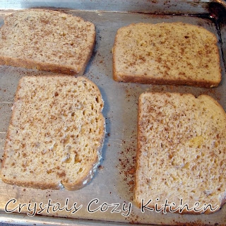I only used 5 slices of bread - one being the end (it could have been six, if I'd had more bread.) Now would be a great time to wash the egg off your hands. ;)